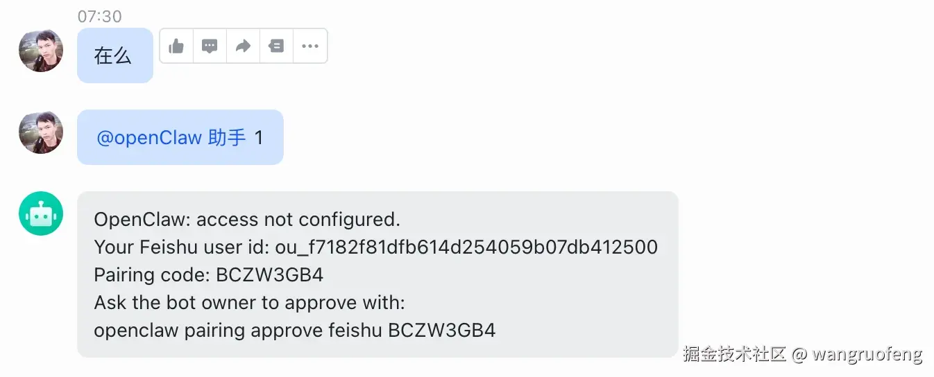 飞书返回 pairing code