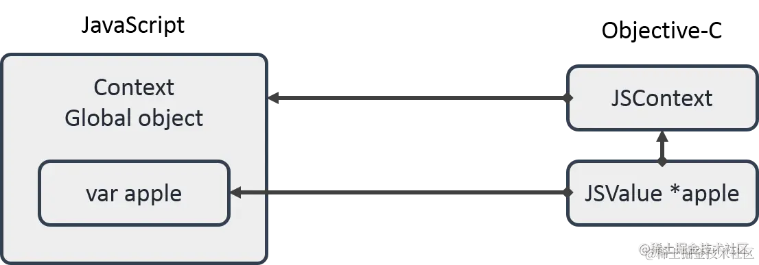 - JSValue 对 JSContext 有强引用 ;JSContext 又挂在 JSVirtualMachine 上。