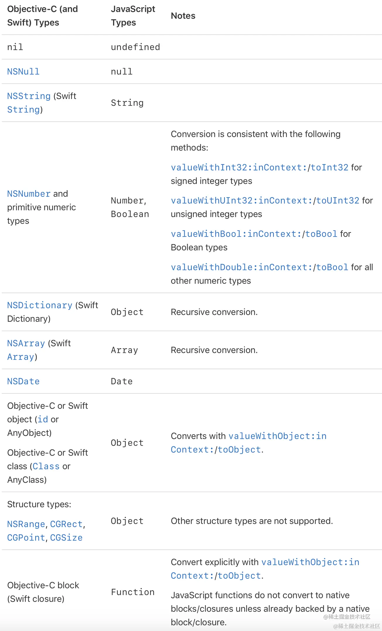 Objective-C中的block转换成JavaScript中的function对象。参数以及返回类型使用相同的规则转换。
