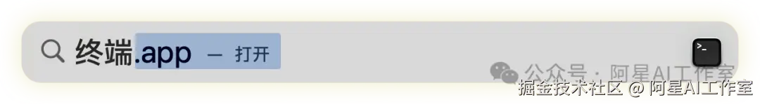 打开苹果搜索框,输入终端,打开终端