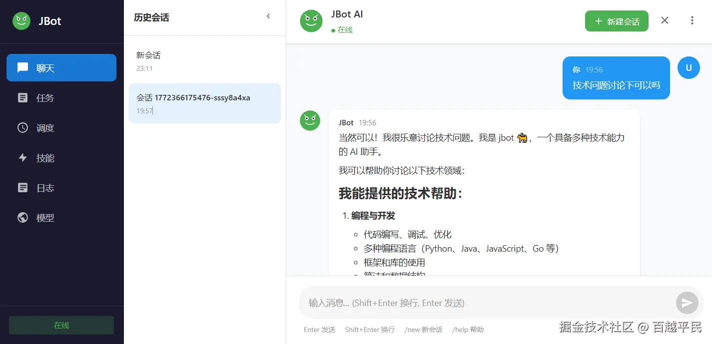 - 前端管理后台(聊天、子任务、技能、日志、模型切换)