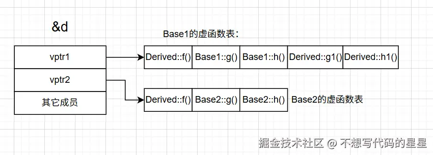 根据前面的图示和代码案例,我们可以清晰地看到多态调用的原理在多重继承下的具体体现。