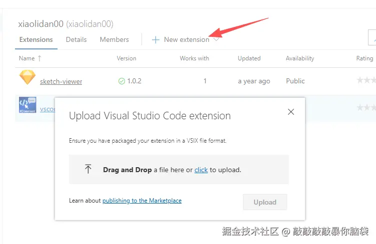 也可以到vscode插件管理页面手动发布 https://marketplace.visualstudio.com/manage