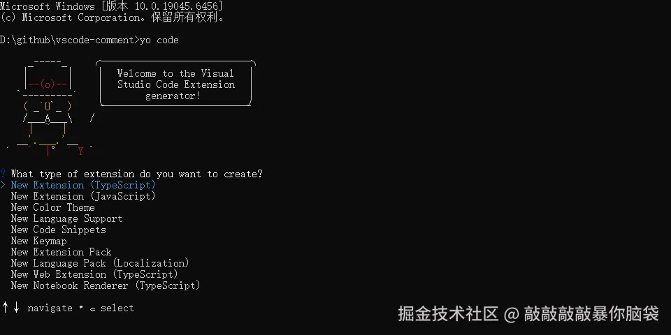 使用Yeoman脚手架工具和generator-codeVS Code 扩展生成器来生成一个vscode插件开发项目