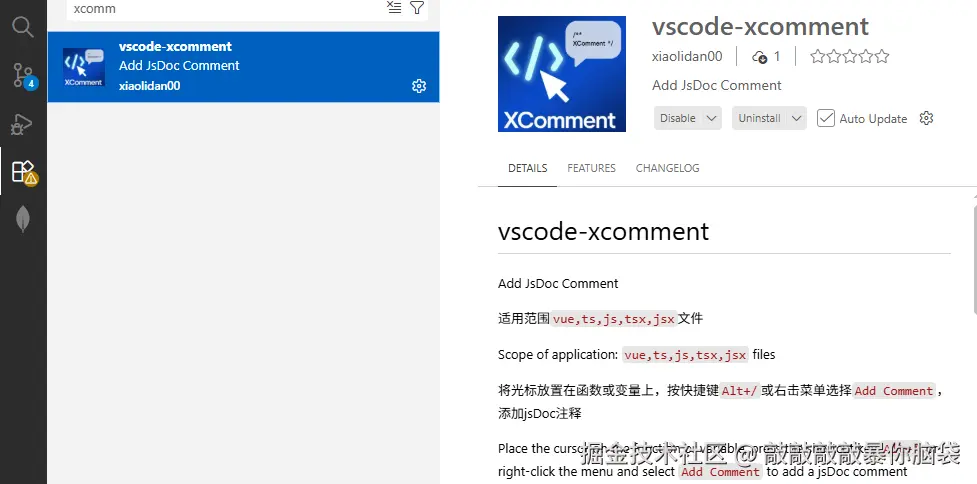 vscode-xcomment这个注释小功能插件已发布到vscode插件市场,欢迎使用~