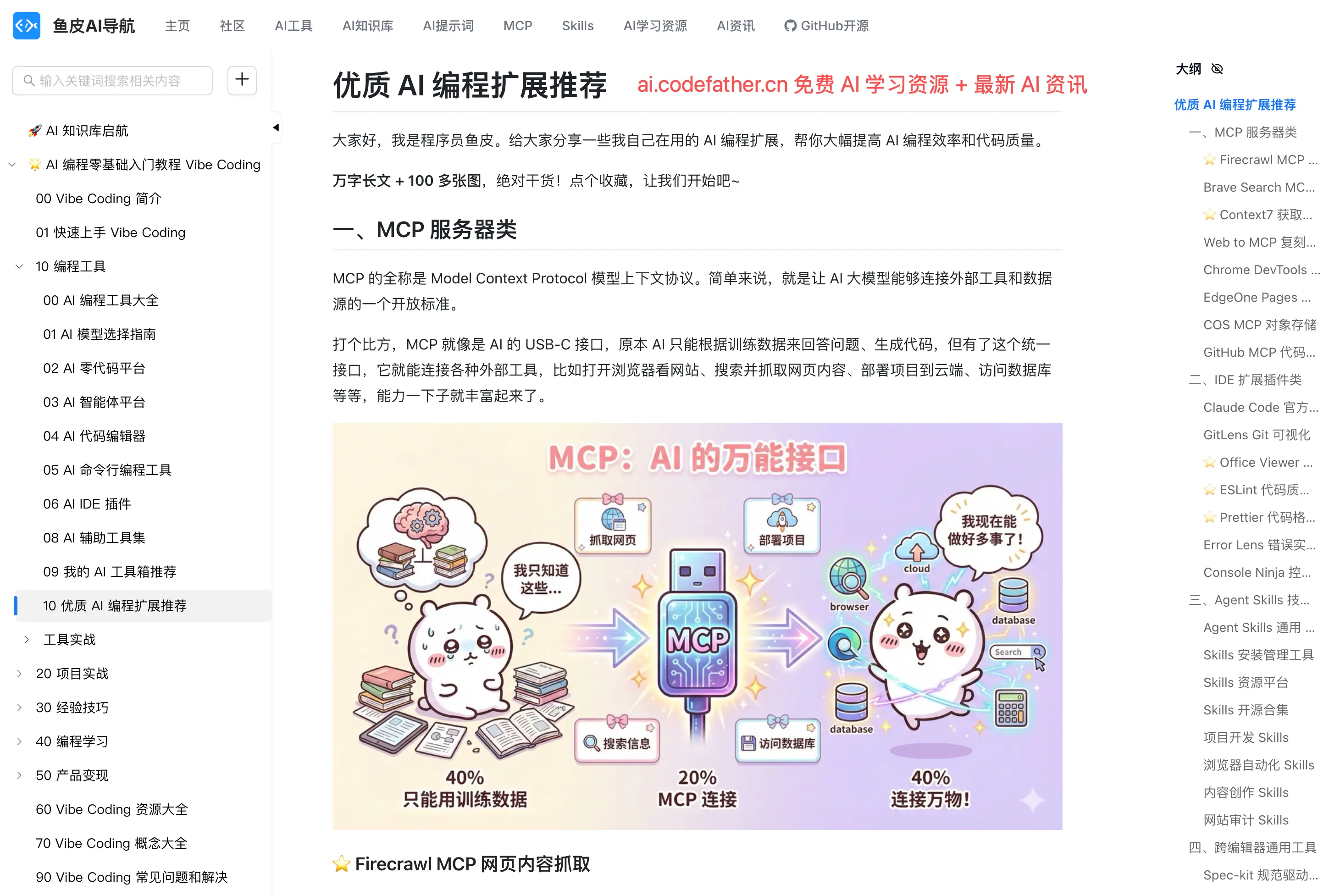 如果你不知道怎么安装 MCP 工具,可以参考我的《AI 编程零基础入门教程》中 "优质 AI 编程扩展推荐" 这一节。