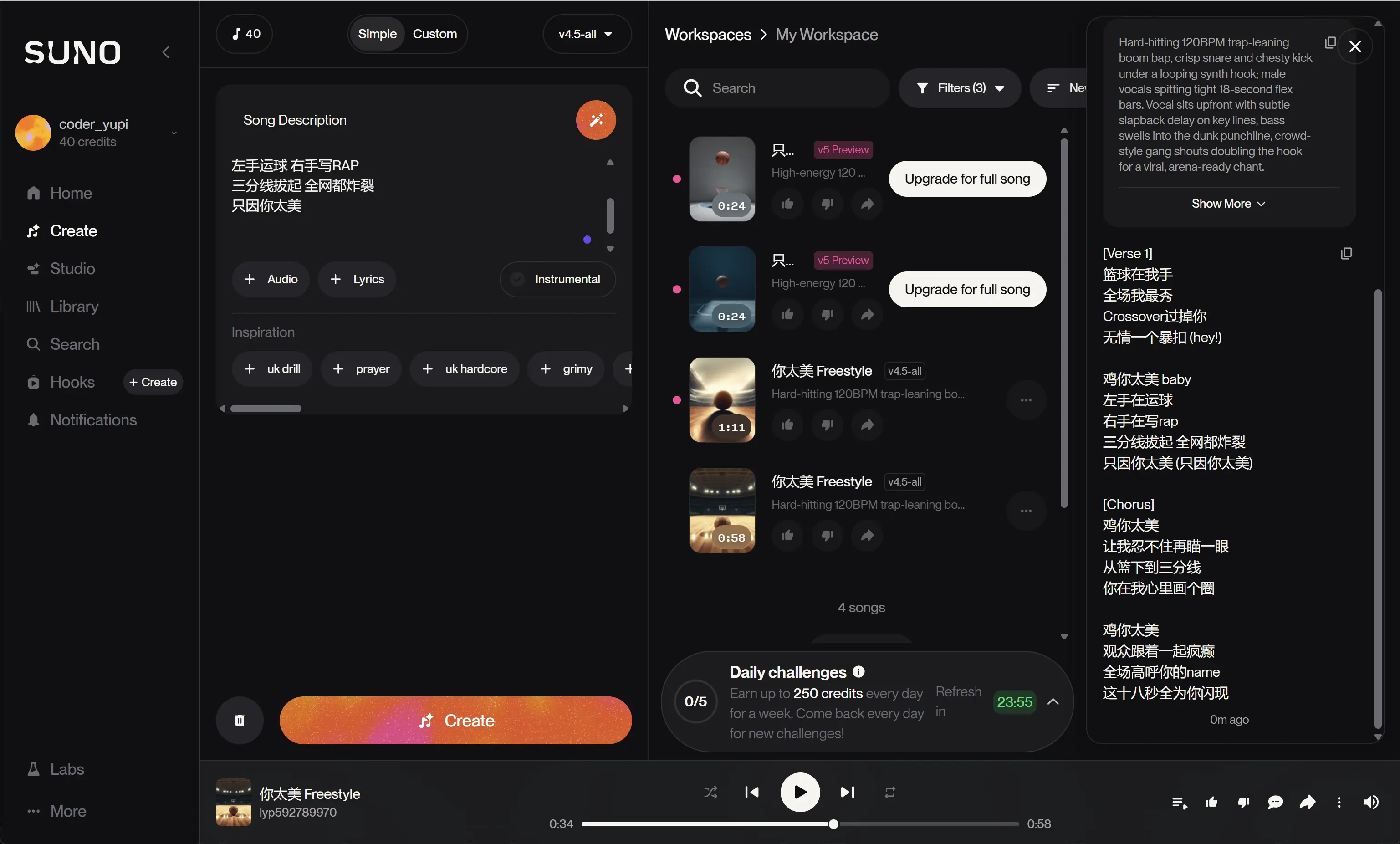 3、用 Suno 生成 RAP 人声