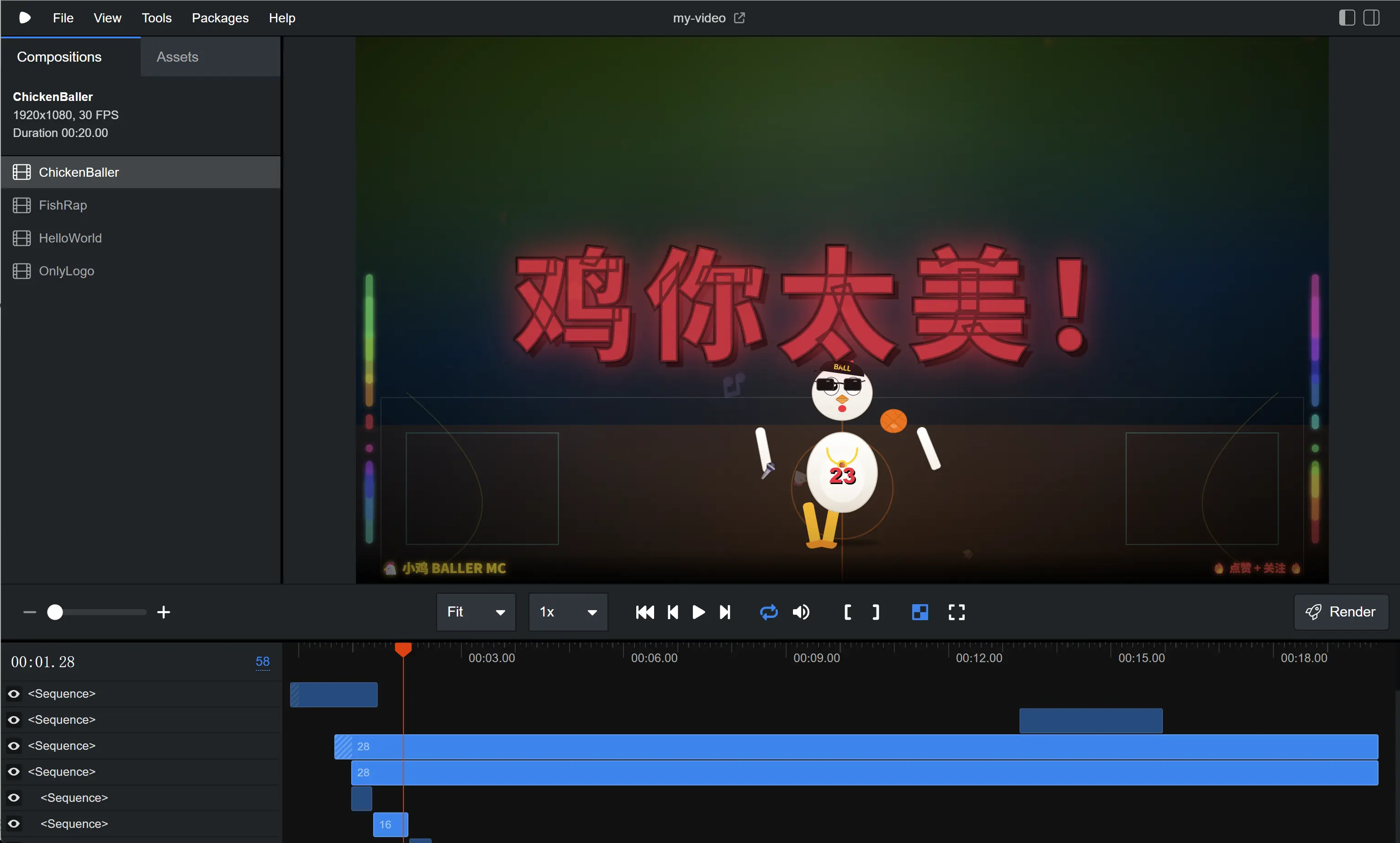 而且目前没有背景音乐和唱 RAP 的音效,有点干巴,我只能脑补出 "鸡你太美,噔噔噔噔,北鼻......" 的音乐,还是要加点真实的素材。
