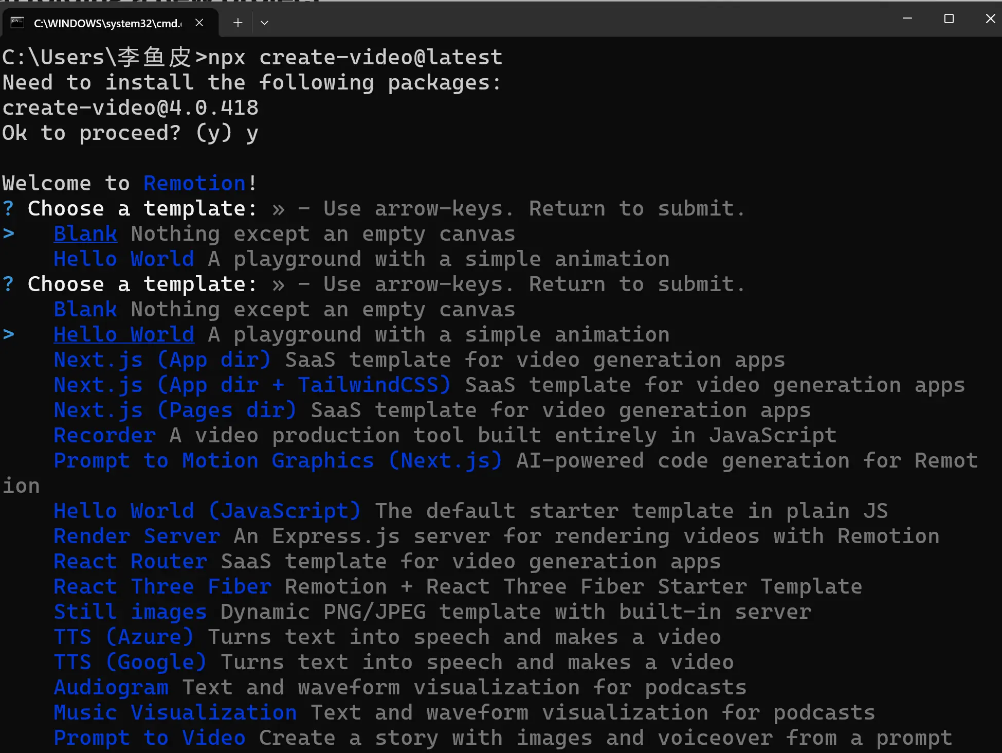 npx create-video@latest