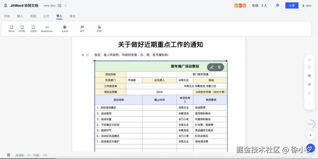 最近很多用户反馈了需要支持Office预览功能,于是我们加班加点,在Jitword 协同AI文档上支持了一键预览Office文件的功能: