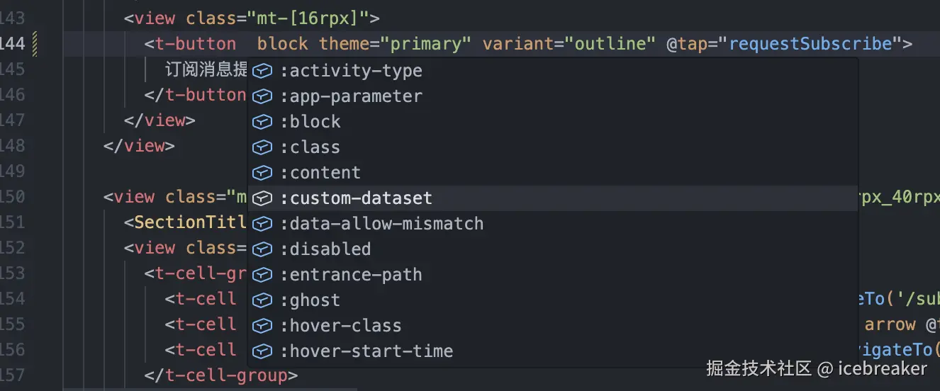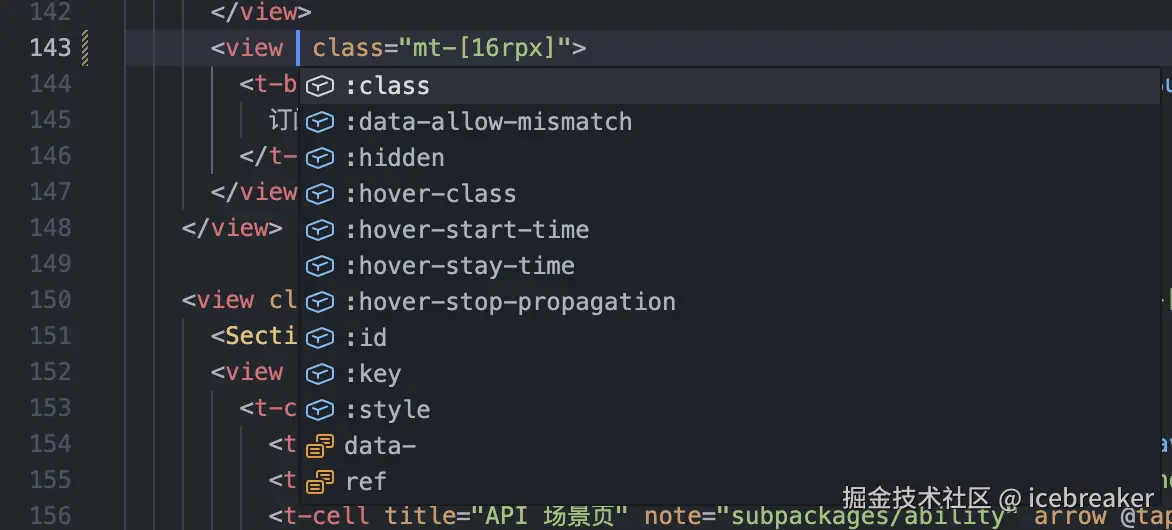VS Code 里装了 Vue 官方插件(Vue - Official / Volar)的话,Weapp-vite 的 .vue 文件直接就能用上模板智能提示和类型检查,不用再折腾一套新的编辑器插件。