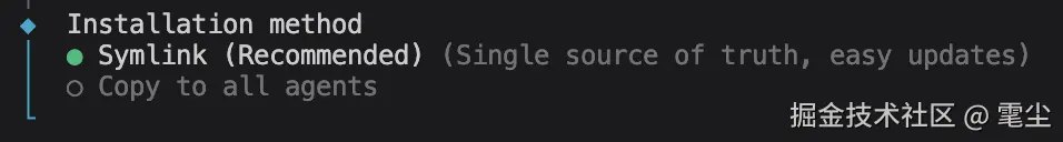 接着让你选择只下载一份 skills(方便更新),还是每个 agents 各维护一份,一般选第一个: