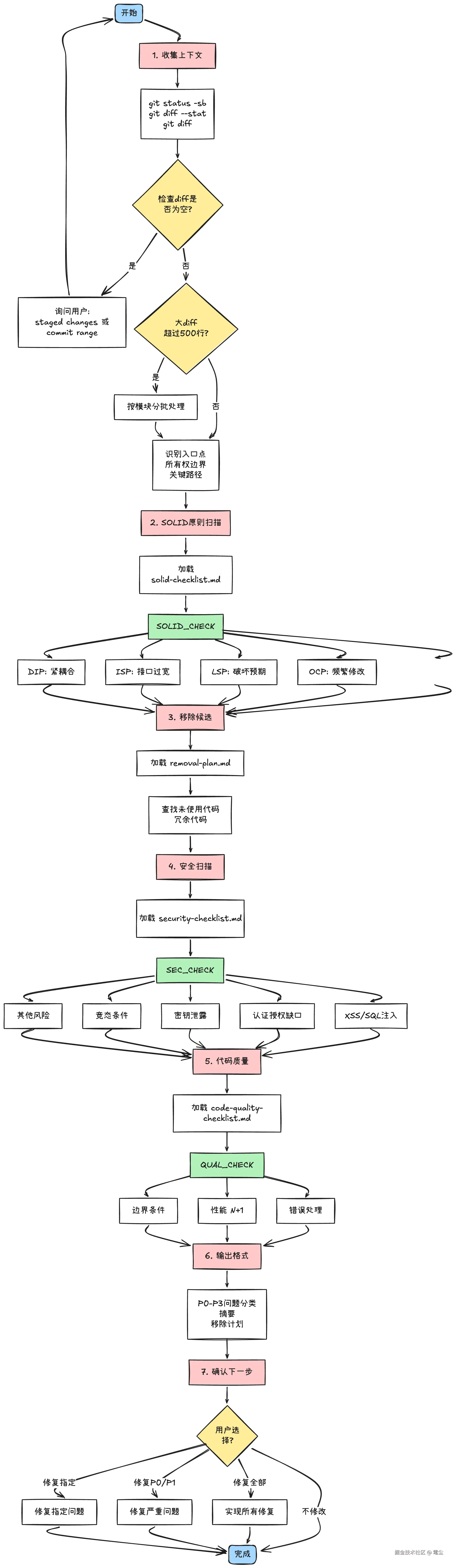 code-review 专家 skills 的执行流程如下所示: