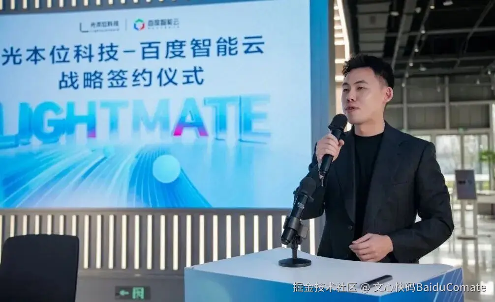 2月27日,百度智能云与光本位科技与在上海张江科学之门AI应用商店举行战略合作签约仪式。双方基于文心快码(Baidu Comate,以下简称"Comate")联合推出针对于光电芯片开发流程的全栈AI研发解决方案Lightmate,以AI Agent 为技术核心重构光计算芯片研发流程。同时,双方围绕联合技术研发、研发工具链集成及产业生态拓展等多维度展开深度协同,推动光计算技术从实验室走向工业化标准落地,助力国产算力自主可控建设。