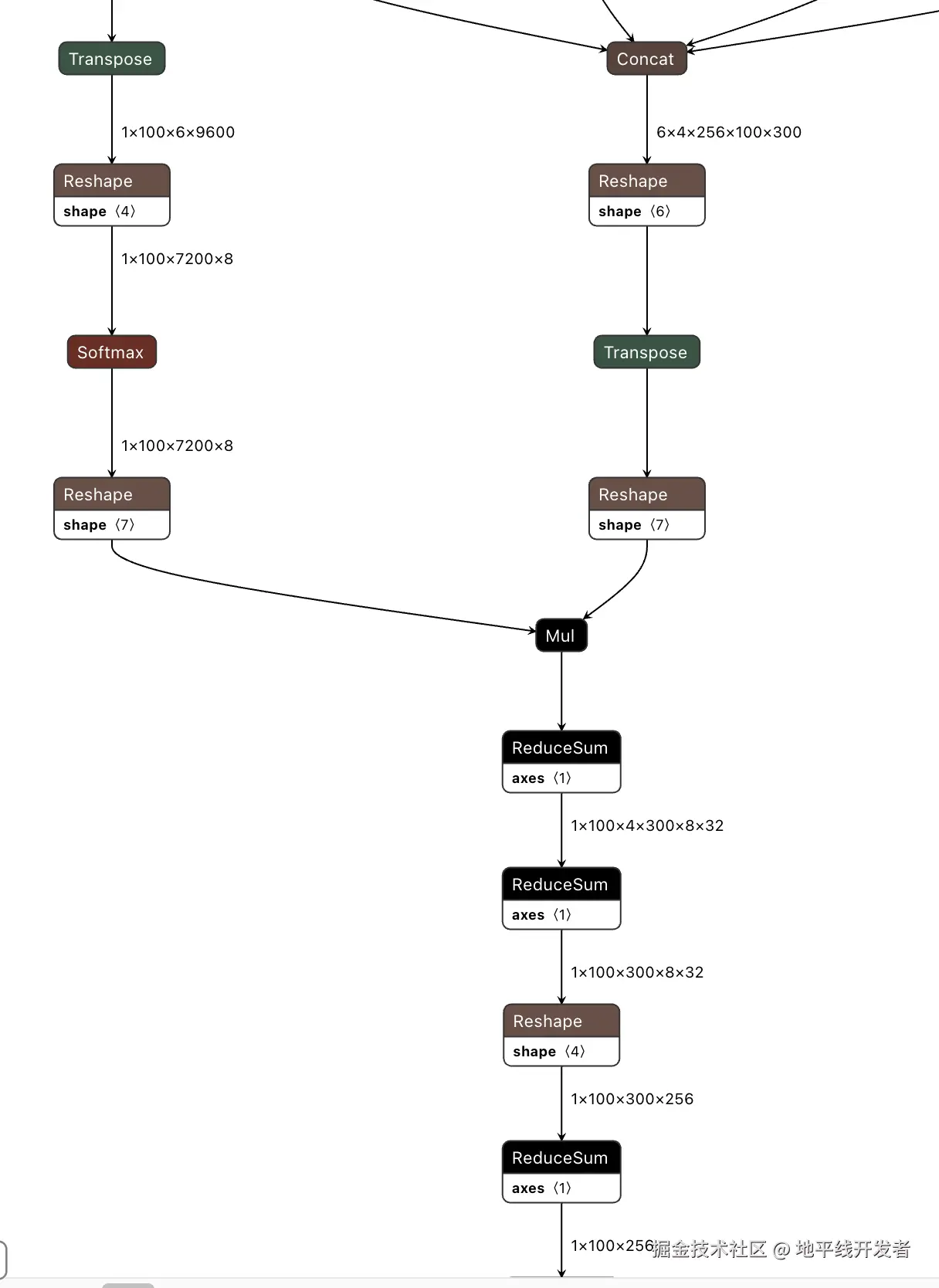 查看模型结构发现,模型中耗时的 Mul 和 ReduceSum 都处于这样的子结构中,所以我们主要是对这个结构进行性能优化。