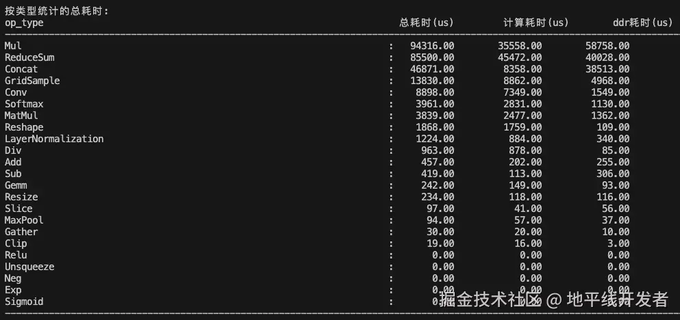 - Mul 和 ReduceSum 算子的耗时最久,而且 mul 算子 ddr 耗时超过计算耗时的 65%,引发了带宽问题;