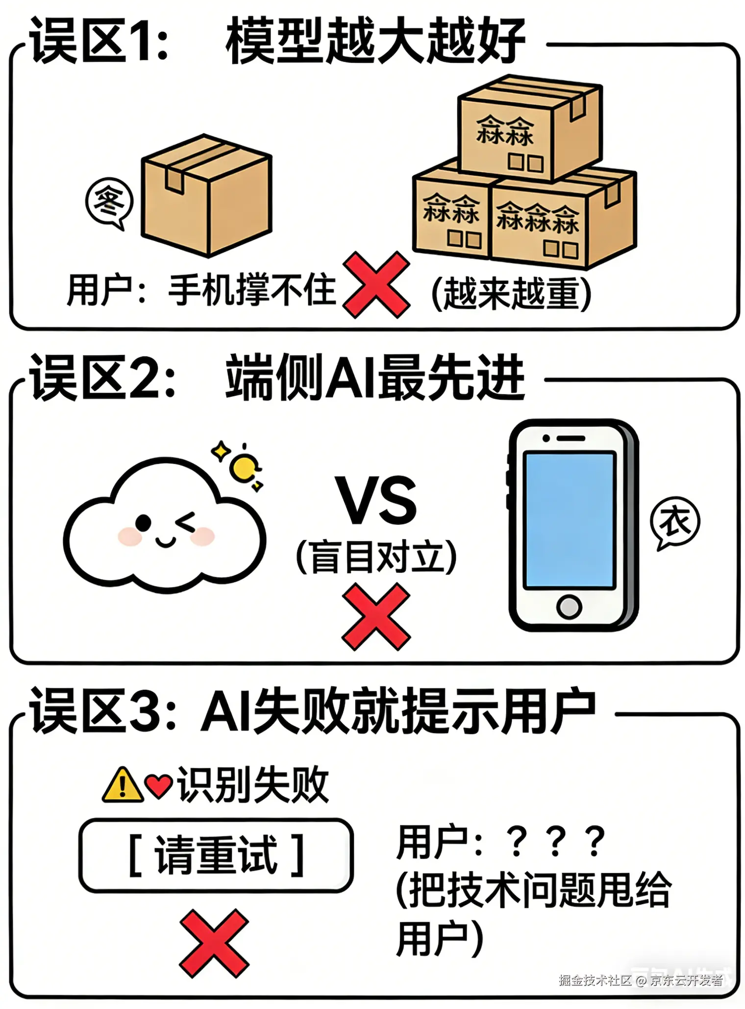 误区1:"模型越大越好"这是技术人的执念。AI同学会说:"我们的模型精度提升了5个点!"但用户不会说:"哇,精度从89%提升到94%,我好感动!"用户只会说:"为什么我的手机这么烫?"梁宁视角:你在追求技术指标,用户在追求情绪稳定。