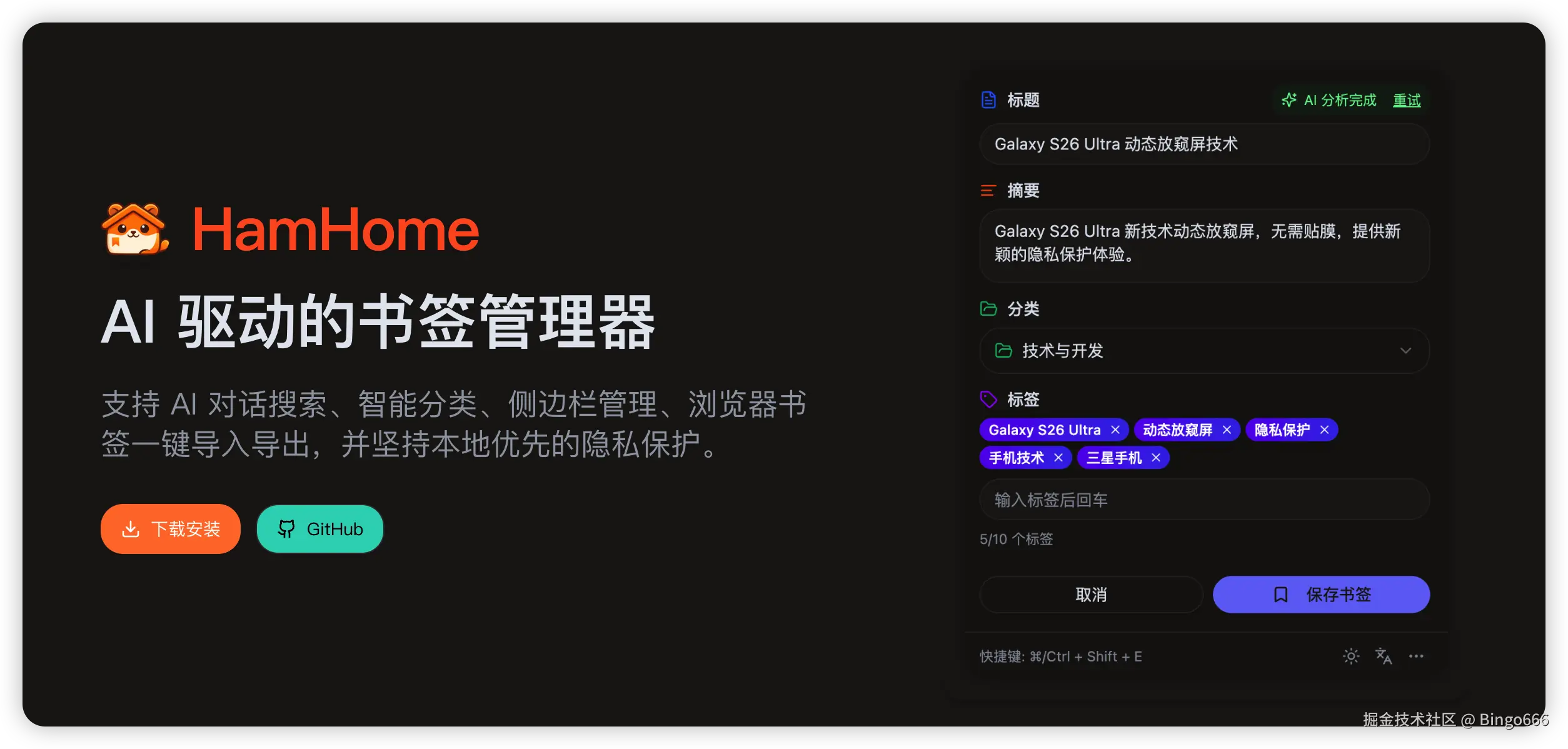现在好了,AI 来了,"HamHome"就来了:一个 AI 驱动的书签管理插件,目标很简单------让你把网页"存"下来之后,未来还能"找"回来。