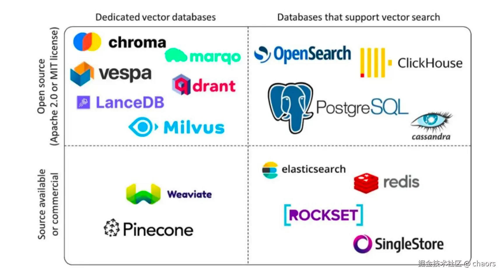 常见的向量数据库,可见下图: