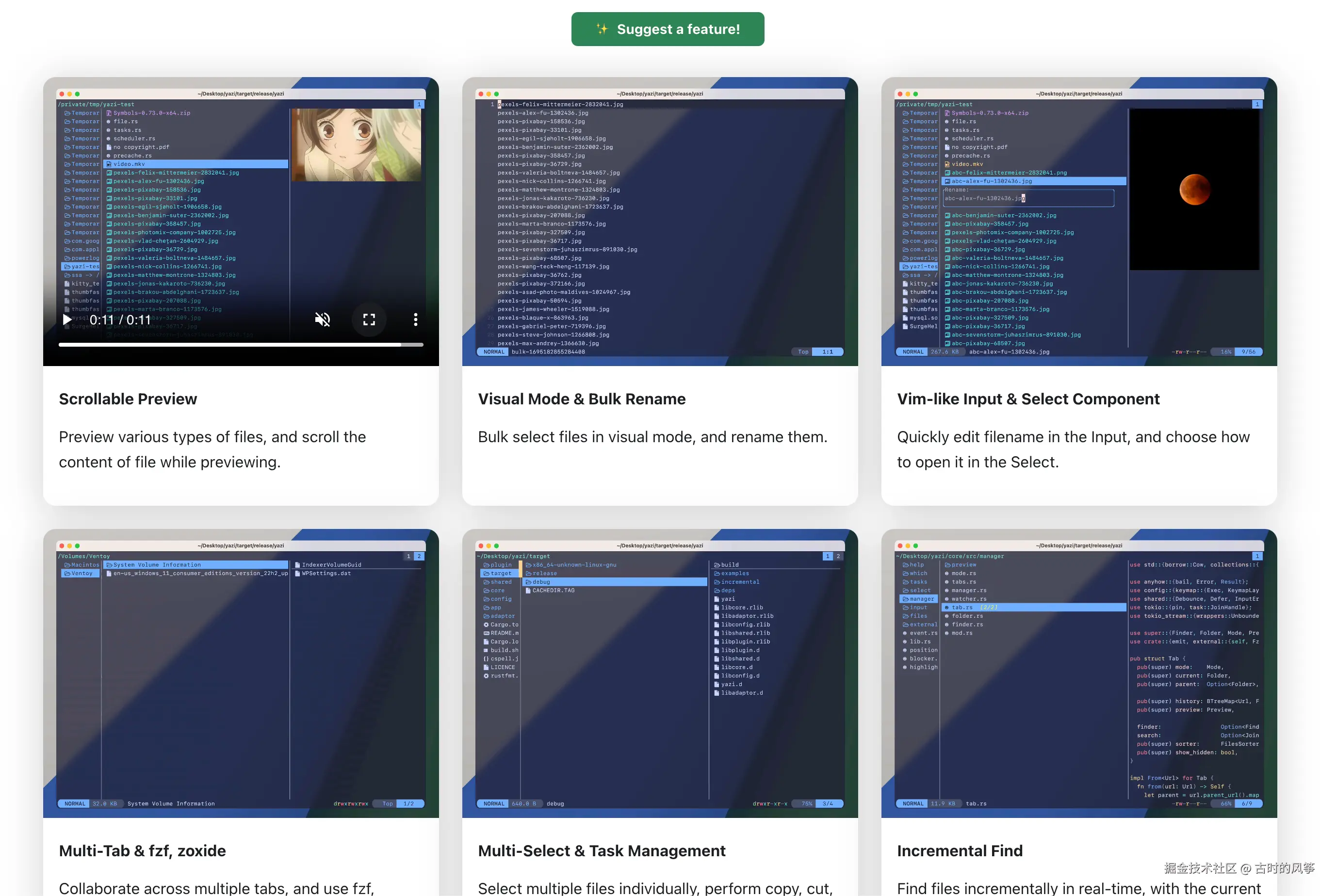 这是一个集成在终端中的文件管理器,凡事在 Finder 中支持的操作它都支持,比如搜索、预览图片和文件、批量处理、vim 操作等等。