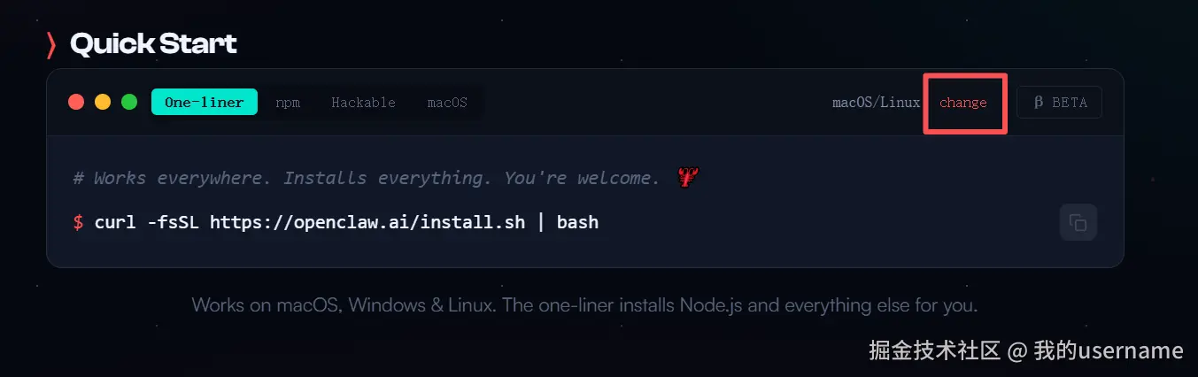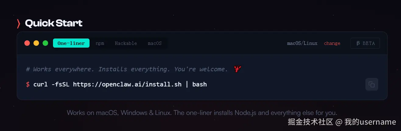 打开openclaw的官网界面,找到 Quick Start