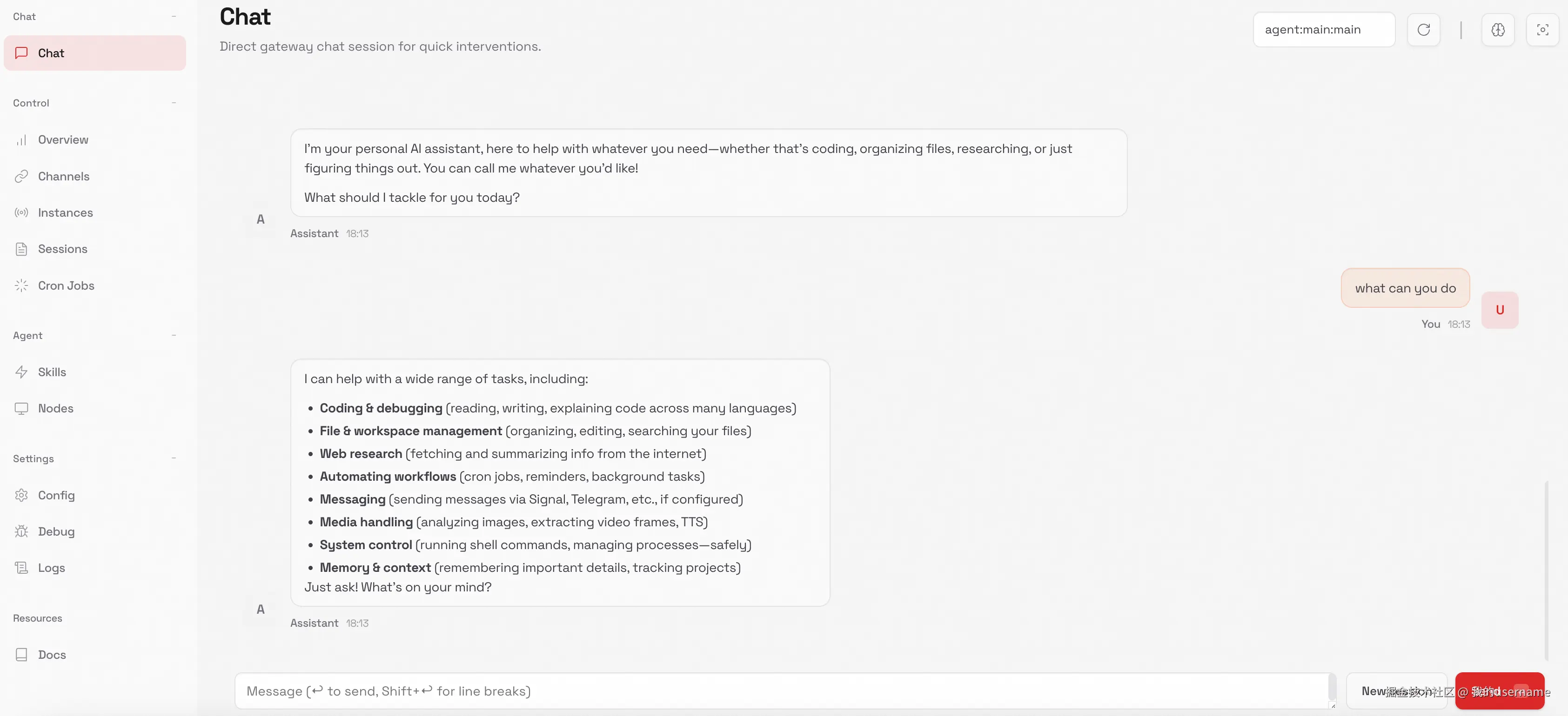 安装和配置好聊天之后,完全可以交给openclaw自己来完成后续你想要的配置,例如配置聊天渠道,安装插件,安装skills,所有你想要干的活和他进行沟通就好了。