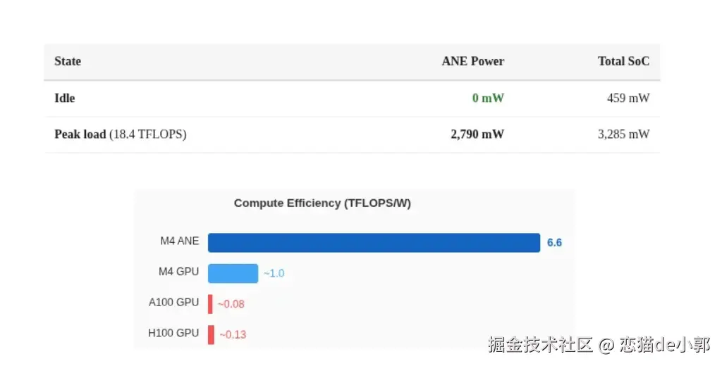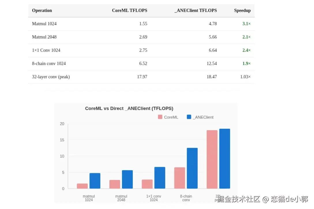 而在直接测试硬件底层的过程中,maderix 发现了几个关于 ANE 的结论: