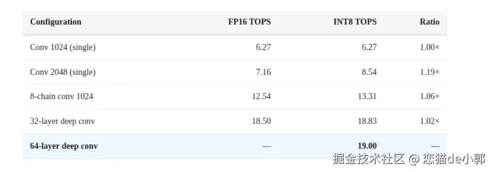 当然,这里是通过实测显示 INT8 未带来 2× 吞吐提升从而推断出来,不是硬件 RTL 级证明。