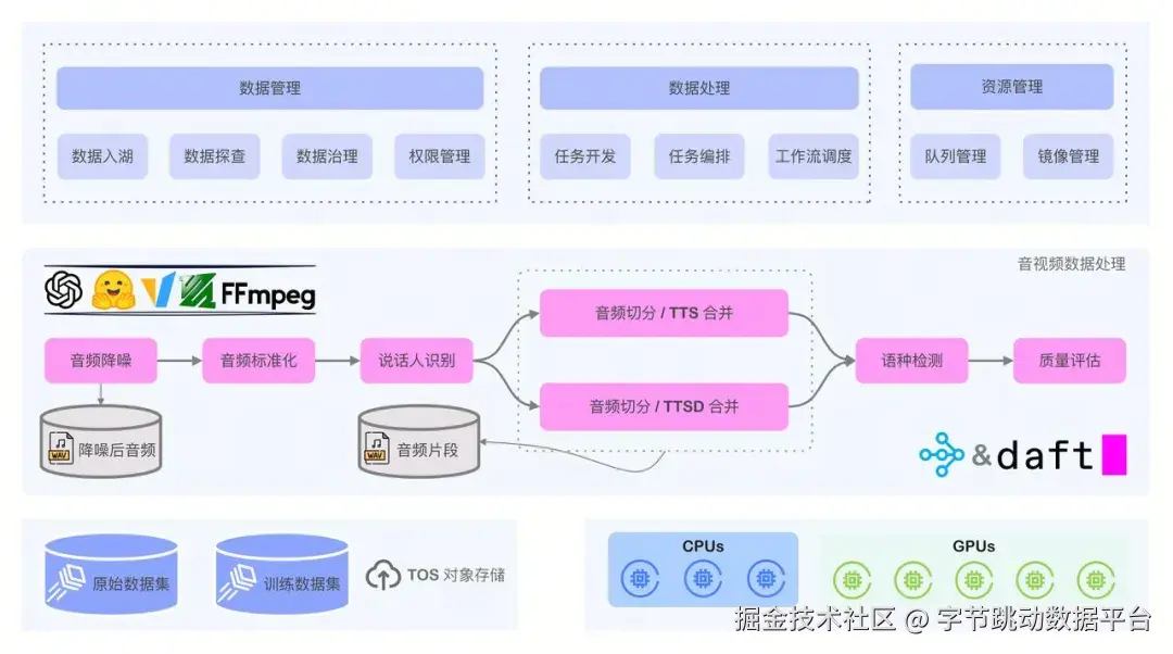 依托 Daft 引擎的并行计算与弹性调度能力,系统可针对海量音频数据执行高效的分布式计算。这一机制有效解决了异构算力环境下的负载均衡问题,确保了复杂计算任务的高效流转。