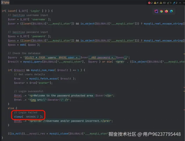 后端加入了 sleep(2) 函数,旨在减缓暴力破解的速度。
