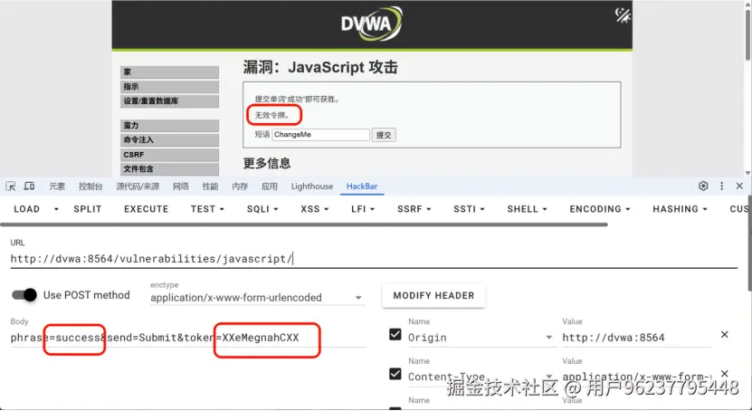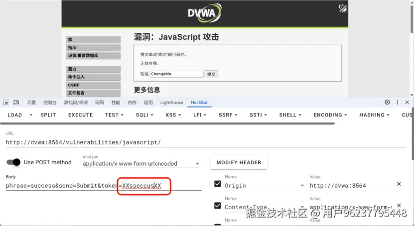我们发现token没变 token是changeme的倒叙然后前后加xx 我们更具此规律构造success的token XXsseccusXX 提交正确