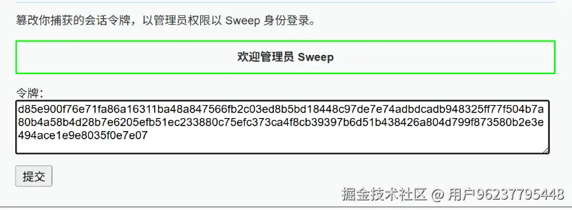 对密码有个简单的硬加密,可以直接破解 2.要同时满足三个条件: user 等于 sweep ex 大于当前时间戳(未过期) level 等于 admin