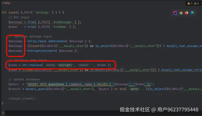 除了上述标签绕过,中级往往只限制了 message 字段。 message过滤比较严格,无法攻击 但是name参数过滤简单