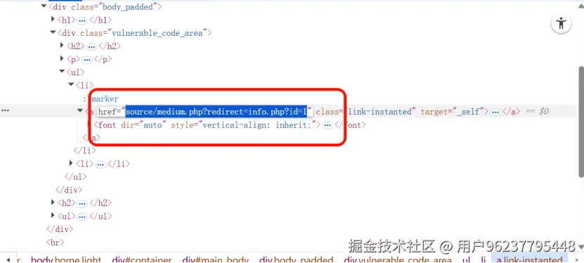如果后端过滤了 http://,可以尝试使用 // 协议相对路径或者进行 URL 编码绕过。 查看网页代码,看到重定向的文件的参数