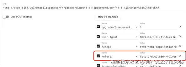 - 利用跨站漏洞:结合 XSS 漏洞在同源环境下发起请求,此时 Referer 验证将失效。