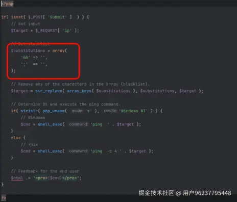 后端设置了黑名单,过滤了 && 和 ; 等常用连接符。