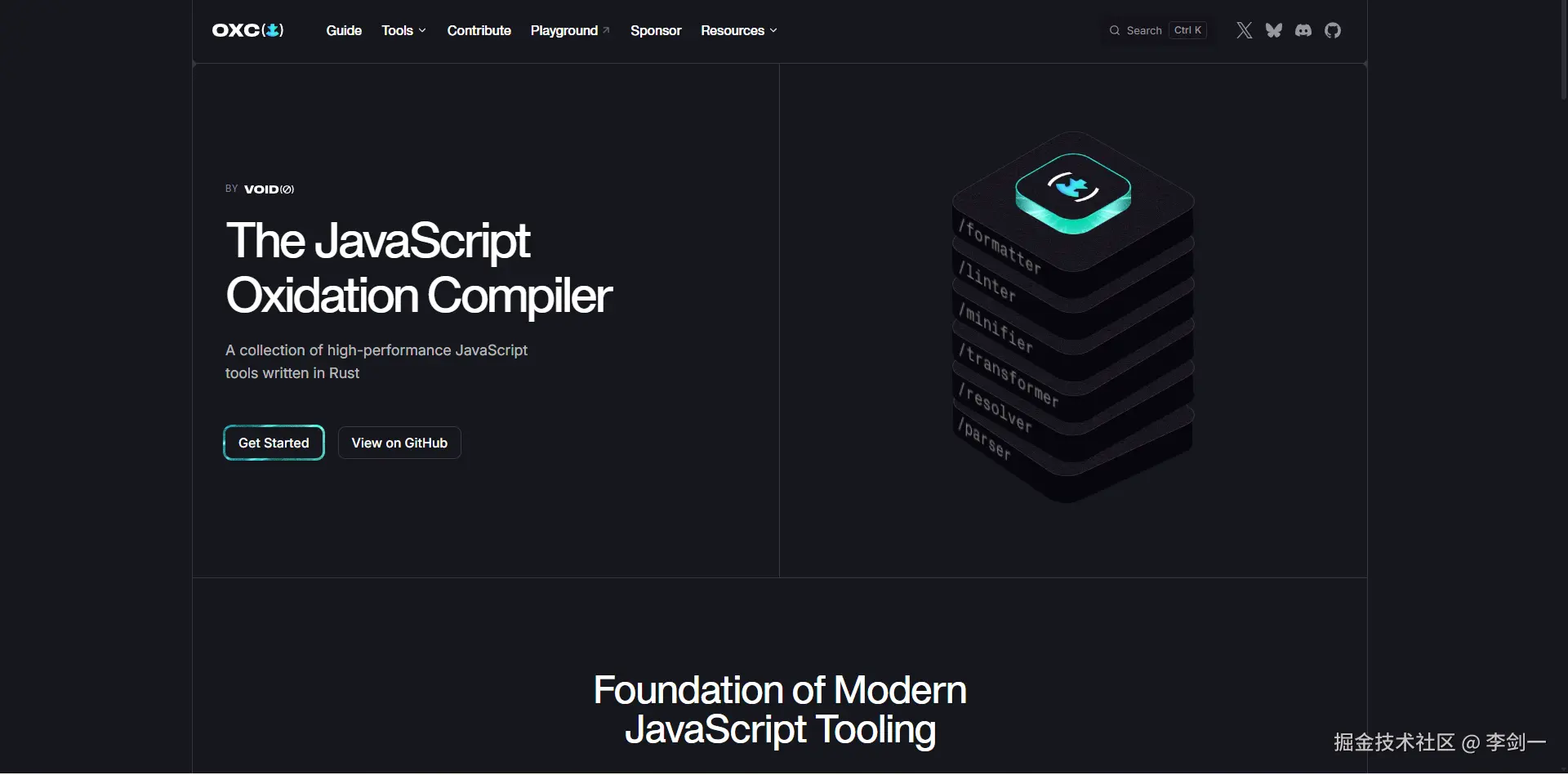 Oxc是 VoidZero 团队(Vite 核心团队,尤雨溪 的公司)用 Rust 开发的 JS/TS 全链路工具链。
