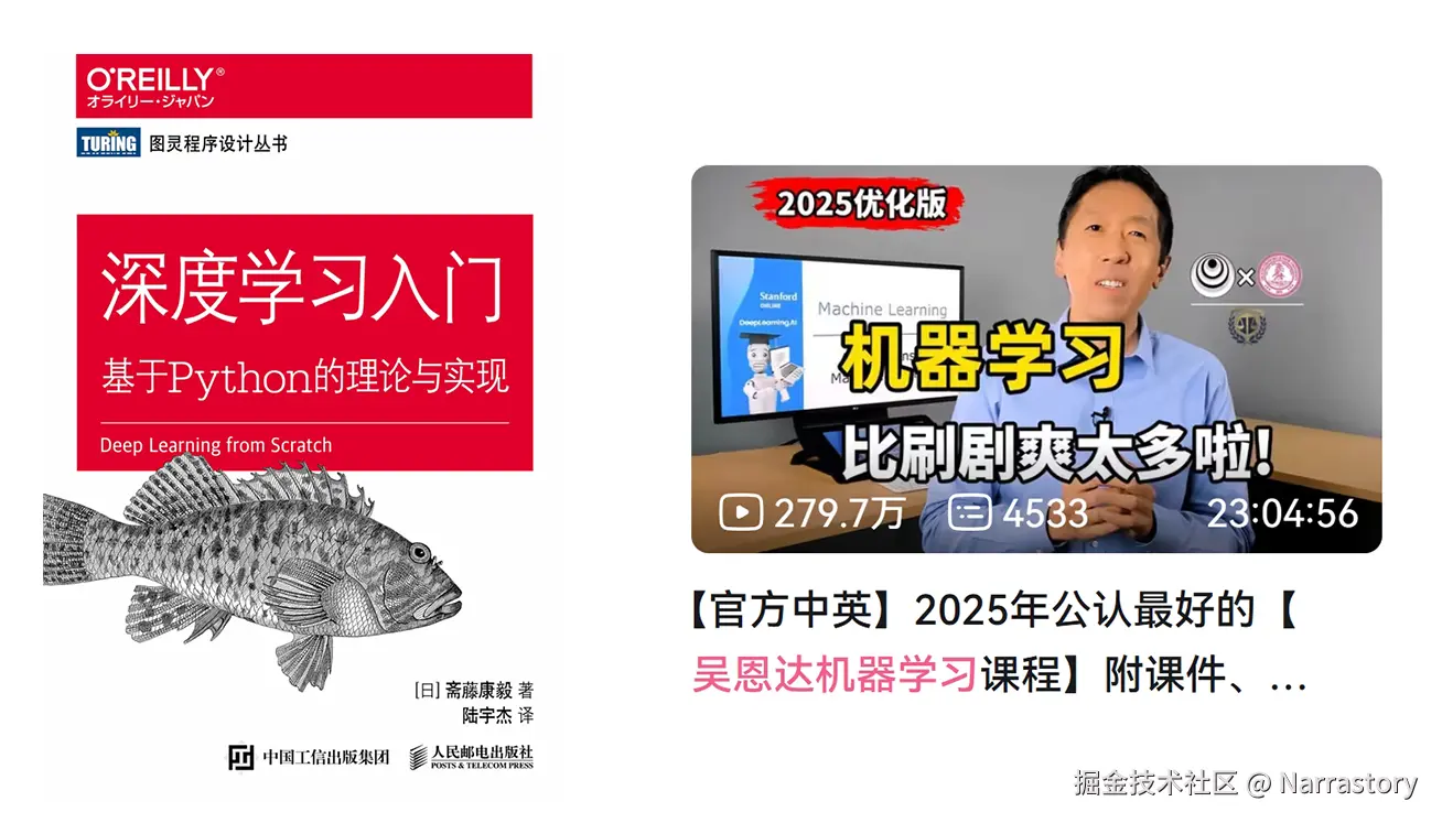 即使你看不懂上面的题目也完全不用担心,这里我强烈推荐两个入门资源:吴恩达的机器学习课程 与书籍 《深度学习入门:基于Python的理论与实现》。这两个都是我亲自学习过并认为非常宝藏的资料,可以说我的人工智能之路正是从它们起步的。(尤其是这个鱼书,真的是非常简单易懂,没有那些故作高深晦涩难懂的内容,如果你之前没看过一定要看一遍,它已经完完全全把全链接神经网络讲透了,极力推荐!👍)