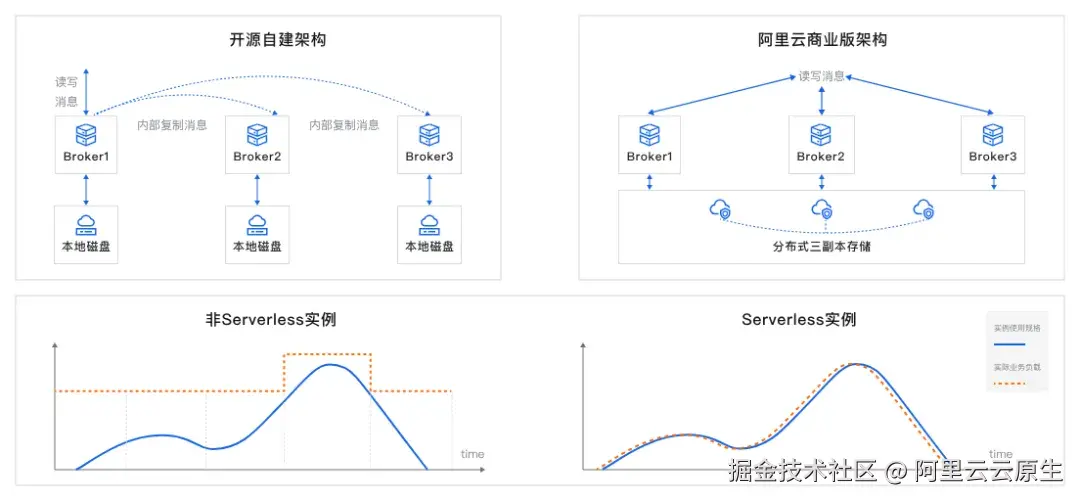 亲宝宝的业务流量具有显著的"节日效应",每逢春节、六一儿童节、开学季等高峰期,用户上传照片量可激增 3--5 倍,家庭通知消息峰值可达平日的 4 倍。过去自建 RocketMQ 集群需提前数周预估容量并手动扩容,成本高昂且难以精准预估偏差,导致资源浪费或服务降级。基于 RocketMQ 5.x Serverless,亲宝宝实现了真正的按需付费与秒级自动弹性伸缩,从容应对流量洪峰,同时大幅优化了资源成本。