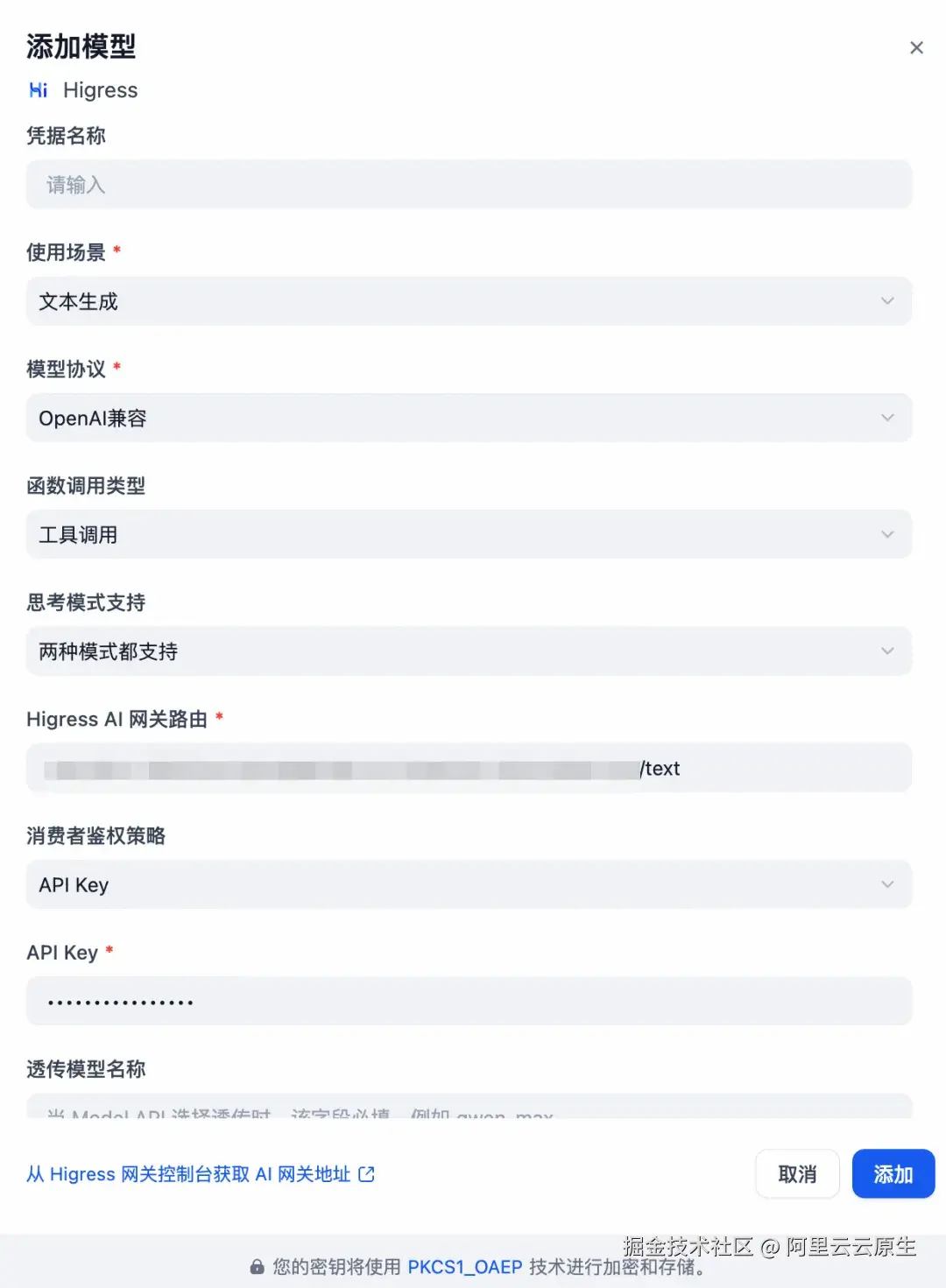 完成插件安装后,Dify 应用通过 Higress 网关访问模型,自然继承网关侧已配置的各项治理能力: