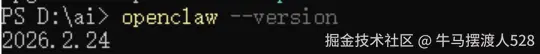 验证安装版本,执行命令查看当前 OpenClaw 版本: