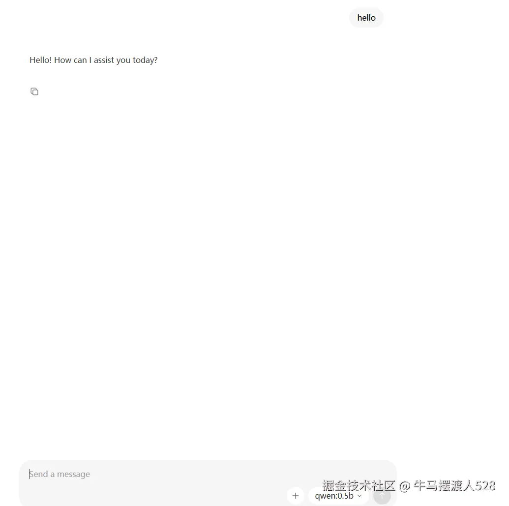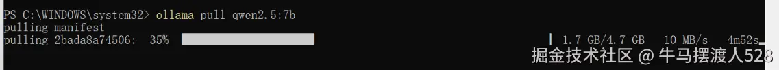 下载完成后,直接在 PowerShell 执行ollama run qwen2.5:7b,输入hello,模型能正常回复即代表本地模型运行成功。