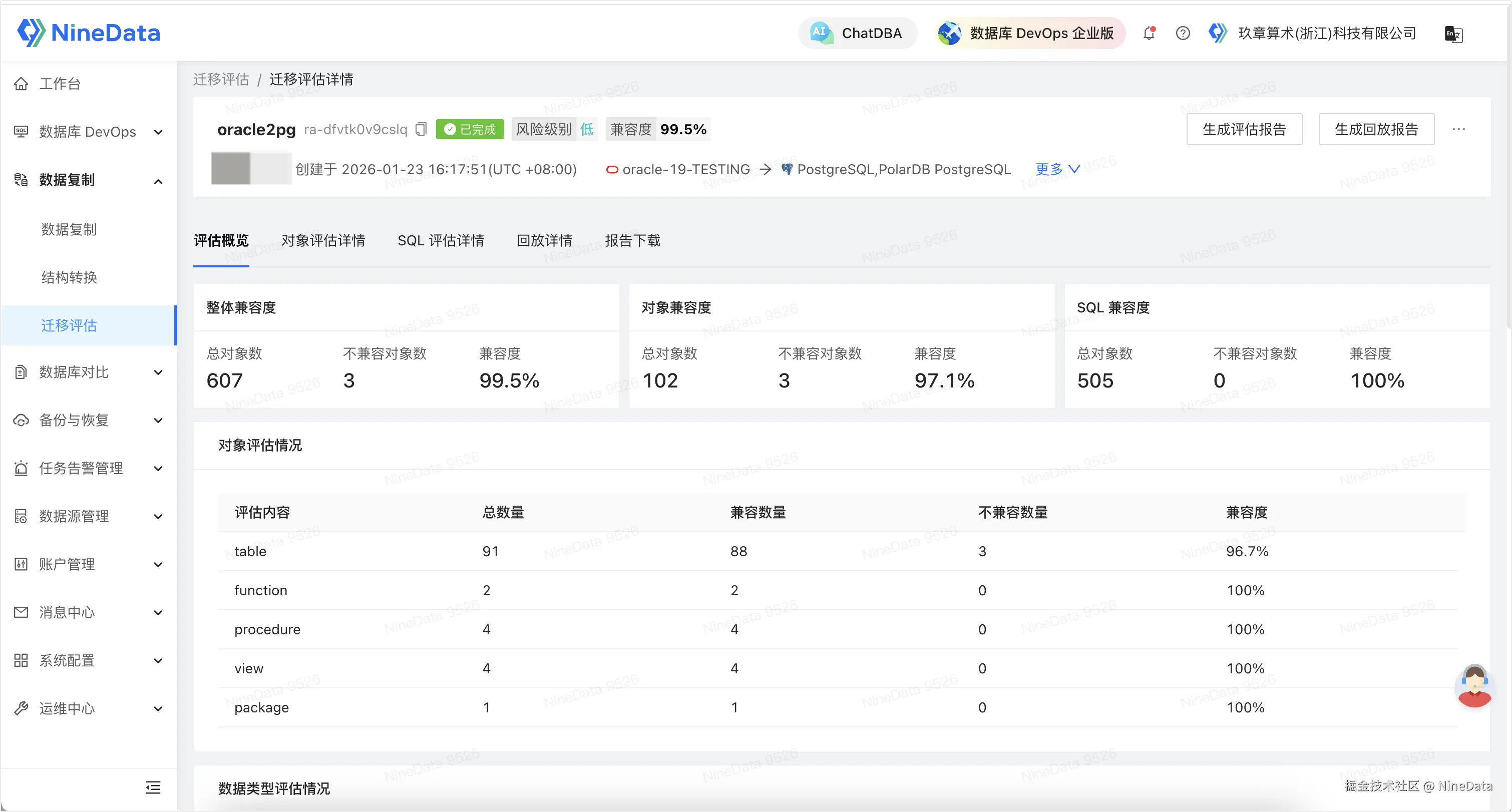 这是 NineData 迁移评估最具生产力的功能: