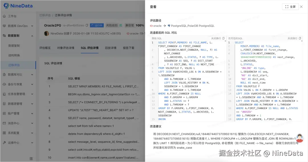 从全面分析,到自动改造,再到真实验证,NineData 提供一套完整的迁移前置作业流程 。让迁移从 "高风险、不可控",变成 风险可见、工作量可算、解决方案可执行 的确定性工程,真正把迁移风险扼杀在摇篮里。