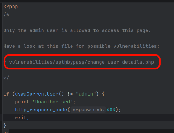 if (dvwaCurrentUser() !="admin"){