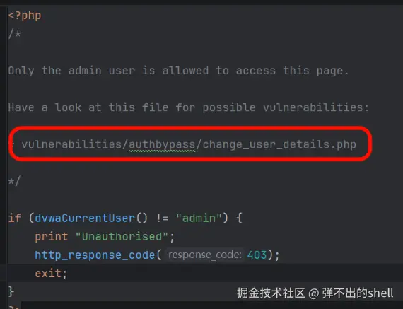 High 难度对前端页面做了管理员权限校验 (非admin用户访问提示403),但对后端接口文件change_user_details.php未做鉴权,可直接发送JSON请求修改任意用户信息。