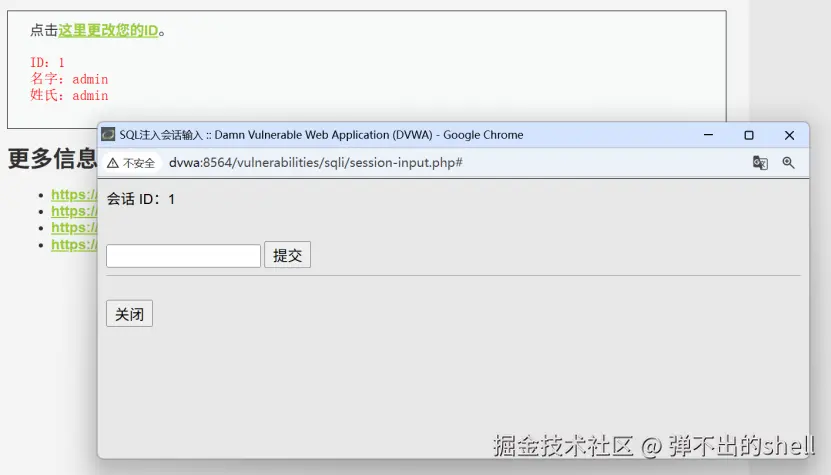 High 难度新增会话弹窗验证 ,但注入核心逻辑未变,仍为字符型注入,可通过手工注入或Sqlmap实现数据提取。