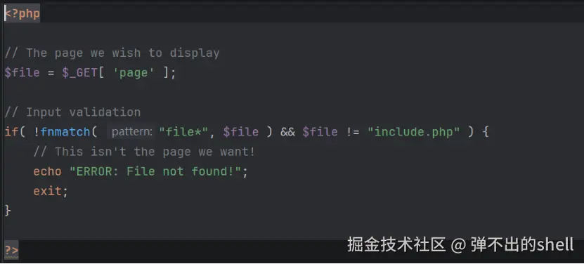 if(!fnmatch("file,fie",$file)&&$file !="include.php"){