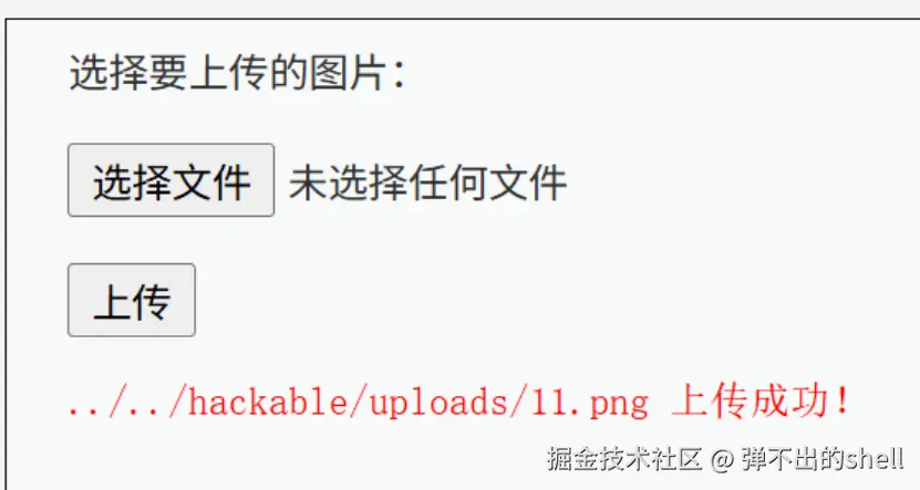 - 上传图片马 :直接上传制作好的11.png,靶场提示上传成功,返回文件路径